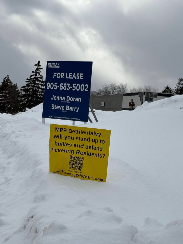 In an earlier post we shared that MPP Bethlenfalvy refuses to stand up against the bully MPP McLeod. We are not giving up. We put up 100 of these signs all over Pickering. More are coming!